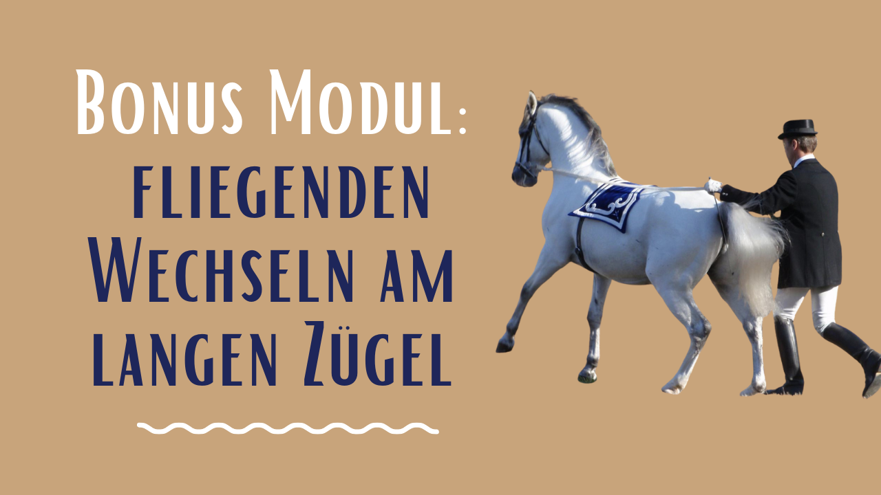 Ein Bonus Modul darüber, wie man dem Pferd die fliegenden Wechsel am langen Zügel beibringt, inklusive Strategie, Problemanalyse, sowie spezielle Techniken zur Arbeit am Langen Zügel.